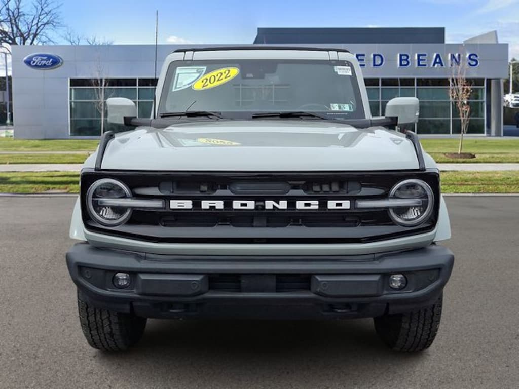 Recent Arrival! 2022 Ford Bronco Outer Banks 2.7L EcoBoost V6 10-Speed Automatic 4D Sport Utility Cactus Gray Bought & Serviced at Fred Beans, Local Trade, Great Service History, Factory Certified Vehicle, 5 Day Return / 30 Day Exchange, Auto Reward Program, Bronco Outer Banks Advanced, 4D Sport Utility, 2.7L EcoBoost V6, 10-Speed Automatic, 4WD, Cactus Gray, Black Onyx Cloth, 12" LCD Capacitive Touchscreen w/Swipe Capability, 2 Smart Charging USB Ports In Dashboard, 360-Degree Camera, Adaptive Cruise Control, Additional Sound Deadening, Connected Built-In Navigation, Equipment Group 314A Lux Package, Evasive Steering Assist, Front Parking Sensors, Heated Steering Wheel, Information on Demand Panel, Radio: B&O Sound System by Bang & Olufsen, Sideview Mirrors, Universal Garage Door Opener, Wireless Charging Pad.
