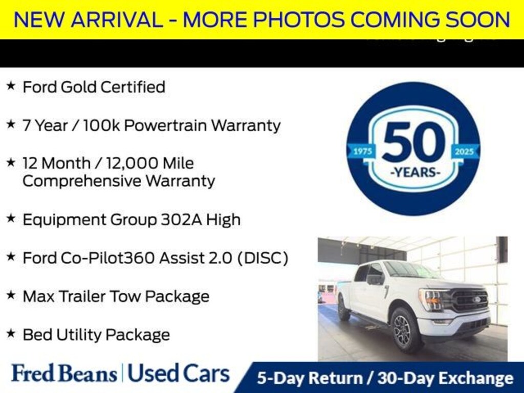 Recent Arrival! 2022 Ford F-150 XLT 3.5L V6 EcoBoost 10-Speed Automatic 4WD 4D SuperCrew Oxford White Ford Gold Certified, 7 Year / 100k Powertrain Warranty, 12 Month / 12,000 Mile Comprehensive Warranty, 10-Way Power Driver & Passenger Seats, 8" Productivity Screen in Instrument Cluster, Accent-Color Step Bars, Bed Utility Package, Black 2-Bar Style Grille w/Black Surround/Accents, Body-Color Door & Tailgate Handles, Body-Color Front & Rear Bumpers, Box Side Decals, BoxLink, Chrome Single-Tip Exhaust, Connected Built-In Navigation (DISC), Dual Zone Electronic Automatic Temperature Control, Electronic Locking w/3.55 Axle Ratio, Equipment Group 302A High, Evasive Steering Assist, Extended Range 36 Gallon Fuel Tank, Exterior Parking Camera Rear, Ford Co-Pilot360 Assist 2.0 (DISC), Front fog lights, GVWR: 7,150 lbs Payload Package, Heated Front Seats, Integrated Trailer Brake Controller, Intelligent Access w/Push Button Start, Intelligent Adaptive Cruise Control w/Stop & Go, Intersection Assist, Leather-Wrapped Steering Wheel, LED Box Lighting, LED Reflector Headlamps, LED Sideview Mirror Spotlights, Max Trailer Tow Package, Onboard 400W Outlet, Power Glass Heated Sideview Mirrors, Power windows, Power-Adjustable Pedals, Power-Sliding Rear Window, Pro Trailer Backup Assist, Radio: AM/FM SiriusXM w/360L, Rear Under-Seat Storage, Remote keyless entry, Remote Start System w/Remote Tailgate Release, SYNC 4 w/Enhanced Voice Recognition, Tailgate Step w/Tailgate Work Surface, Unique Sport Cloth 40/Console/40 Front-Seats, Wheels: 18" 6-Spoke Machined Aluminum, XLT Sport Appearance Package, Zone Lighting.