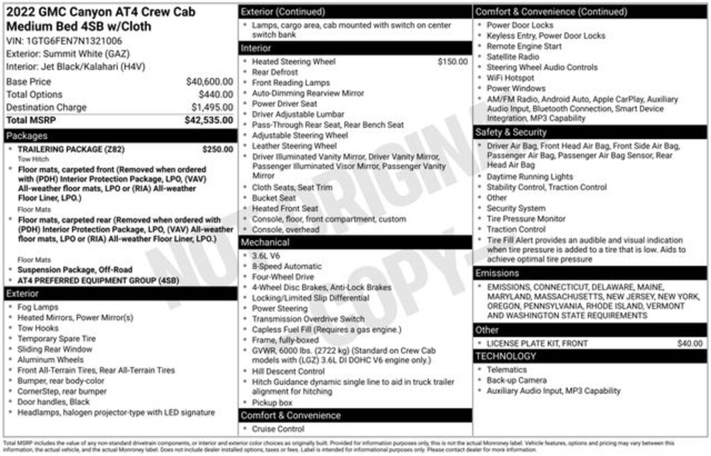 Experience the ultimate in capability, comfort, and style. Visit our showroom today and let us put you behind the wheel of this exceptional 2022 GMC Canyon AT4 w/Cloth.