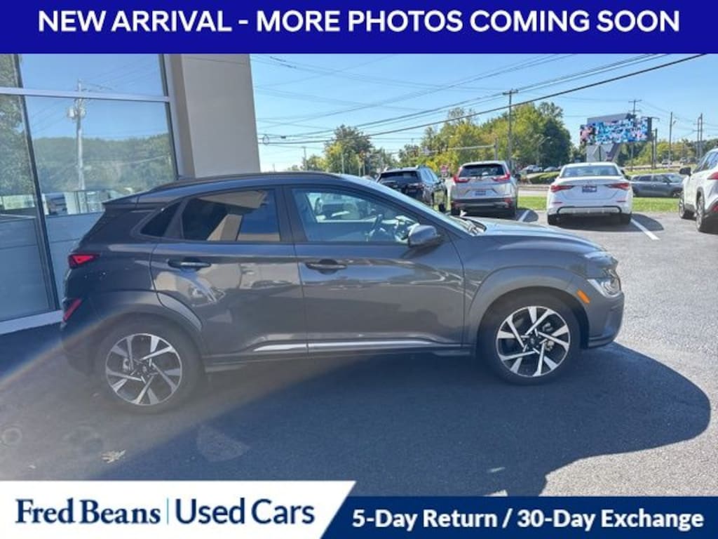 Recent Arrival! 2023 Hyundai Kona Limited I4 Shiftronic AWD 4D Sport Utility Thunder Gray Free First Oil Change, 5 Day Return / 30 Day Exchange, Auto Reward Program, 5 Year / 60,000 miles comprehensive OISD, 10 Year / 100,000 miles powertrain OISD, ABS brakes, AM/FM radio: SiriusXM, Apple CarPlay & Android Auto, Emergency communication system: Blue Link Connected Car Service (3-year complimentary subscription), Exterior Parking Camera Rear, Heated Front Bucket Seats, Navigation System, Option Group 01, Power driver seat, Power moonroof, Power steering, Power windows, Rain sensing wipers, Rear anti-roll bar, Remote keyless entry, Spoiler, Steering wheel mounted audio controls.