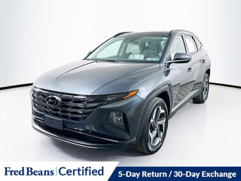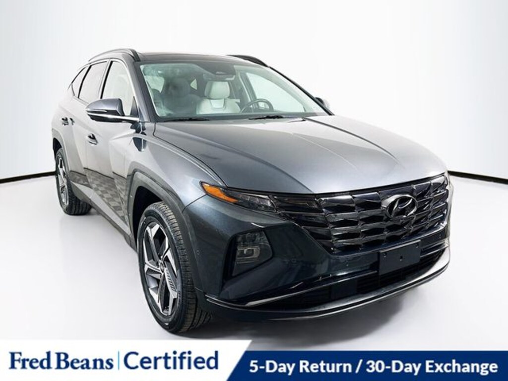 2024 Hyundai Tucson Limited Limited 2.5L I4 DGI DOHC 16V LEV3-SULEV30 187hp 8-Speed Automatic with SHIFTRONIC AWD 4D Sport Utility Dark Gray Metallic Local Trade, Great Service History, Factory Certified Vehicle, 5 Day Return / 30 Day Exchange, Auto Rewards Program, AWD, Apple CarPlay & Android Auto, Auto High-beam Headlights, Exterior Parking Camera Rear, Front dual zone A/C, Heated & Ventilated Front Bucket Seats, Heated door mirrors, Heated rear seats, Heated steering wheel, Illuminated entry, Leather Seat Trim, Memory seat, Navigation System, Power door mirrors, Power driver seat, Power Liftgate, Power moonroof, Radio: Bose Premium w/AM/FM/HD Audio System, Rain sensing wipers, Steering wheel mounted audio controls, Turn signal indicator mirrors, Wheels: 19" x 7.5J" Machine-Face Finish Alloy.