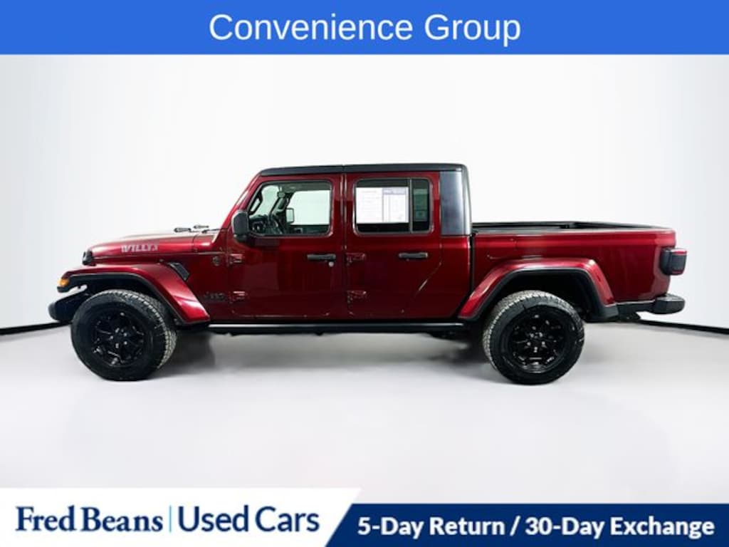 2021 Jeep Gladiator Willys 3.6L V6 24V VVT 8-Speed Automatic 4WD 4D Crew Cab Snazzberry Pearlcoat Great Service History, 4-Wheel Drive Decal, 7.0" Touch Screen Display, 97 mph Maximum Speed Calibration, Air Conditioning w/Auto Temperature Control, Anti-Spin Differential Rear Axle, Apple CarPlay, Automatic Headlamps, Black Grille, Black Trail Rated Badge, Blind Spot & Cross Path Detection, Body Color Fender Flares (2-Piece), Bridgestone Brand Tires, Cluster 7.0" TFT Color Display, Cold Weather Group, Convenience Group, Daytime Running Lamp System, Deep Tint Sunscreen Windows, Front 1-Touch Down Power Windows, Front Heavy Duty Red Accent Shock Absorbers, Google Android Auto, Heated Front Seats, Heated Steering Wheel, Integrated Center Stack Radio, Integrated Voice Command w/Bluetooth, Leather Wrapped Steering Wheel, LED Taillamps, Mold In Color Bumper w/Gloss Black, MOPAR All-Weather Floor Mats, ParkSense Rear Park Assist System, Power Heated Mirrors, Power Tailgate Lock, Protection Sill Rails, Quick Order Package 24W Willys, Radio: Uconnect 4 w/7" Display, Rear Heavy Duty Red Accent Shock Absorbers, Remote Keyless Entry, Safety Group, Security Alarm, SiriusXM Satellite Radio, Speed Sensitive Power Locks, Sun Visors w/Illuminated Vanity Mirrors, Technology Group, Universal Garage Door Opener, USB Host Flip, Wheels: 17" x 7.5" Black Aluminum w/Gray Pad, Willys, Willys Hood Decal.