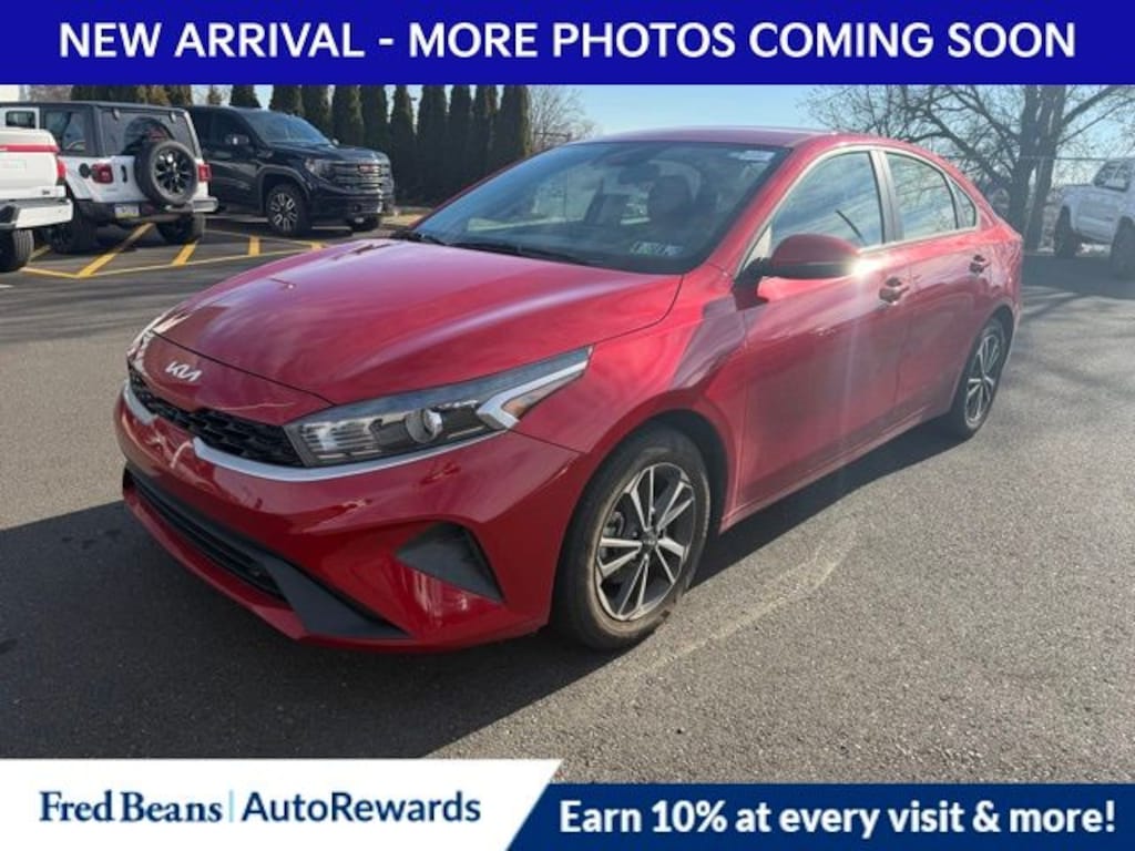 Recent Arrival! 2023 Kia Forte LXS 2.0L I4 MPI CVT FWD 4D Sedan Currant Red 16" x 6.5J Alloy Wheels, 4 Speakers, 4-Wheel Disc Brakes, ABS brakes, Air Conditioning, Alloy wheels, AM/FM radio, Apple CarPlay & Android Auto, Auto High-beam Headlights, Blind-Spot Collision Avoidance (BCA), Brake assist, Bumpers: body-color, Cargo Mat, Carpet Floor Mats, Cloth Seat Trim, Delay-off headlights, Driver door bin, Driver vanity mirror, Dual front impact airbags, Dual front side impact airbags, Electronic Stability Control, Exterior Parking Camera Rear, Front anti-roll bar, Front Bucket Seats, Front Center Armrest, Front reading lights, Front wheel independent suspension, Fully automatic headlights, Heated Outside Mirrors, Illuminated entry, LED Turn Signal w/Outside Mirror Indicators, Low tire pressure warning, LXS Technology Package, Occupant sensing airbag, Outside temperature display, Overhead airbag, Overhead console, Panic alarm, Passenger door bin, Passenger vanity mirror, Power door mirrors, Power steering, Power windows, Radio data system, Radio: 8" Display Audio, Rear Cross-Traffic Collision Avoidance (RCCA), Rear window defroster, Remote keyless entry, Safe Exit Warning (SEW), Security system, Speed control, Split folding rear seat, Steering wheel mounted audio controls, Tachometer, Telescoping steering wheel, Tilt steering wheel, Traction control, Trip computer, Variably intermittent wipers.