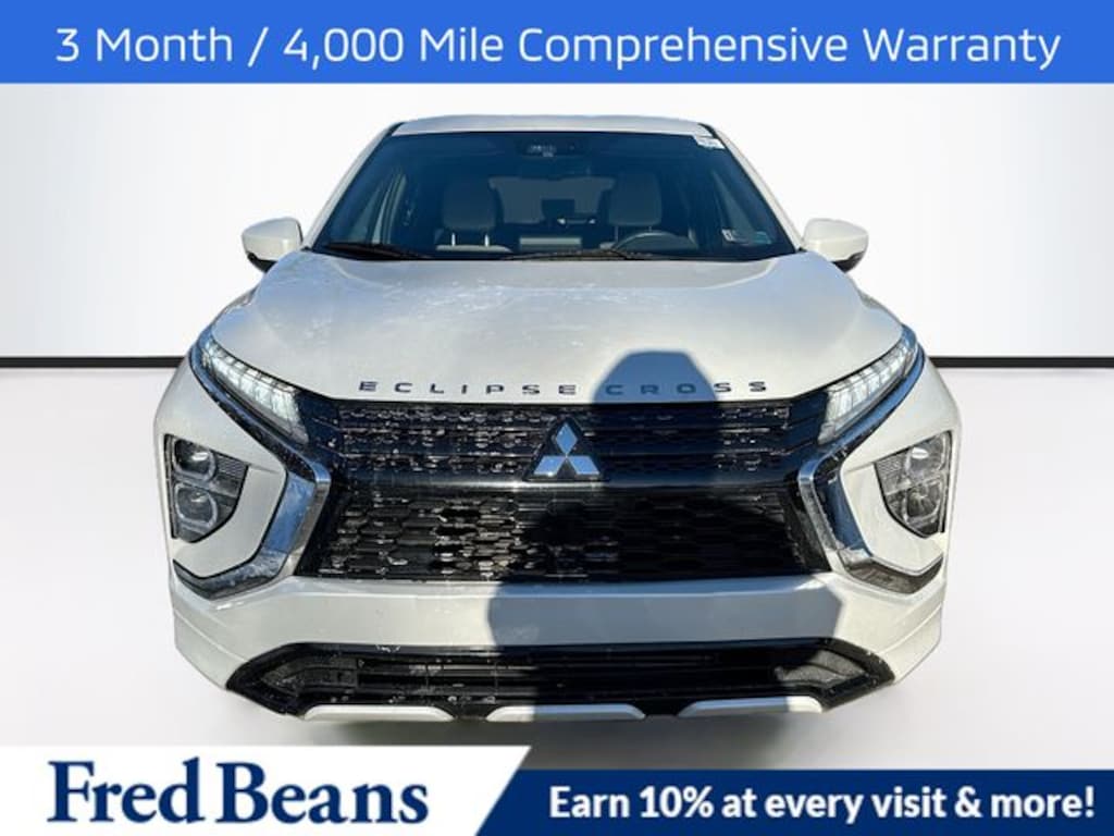 CARFAX One-Owner. Clean CARFAX. 25/26 City/Highway MPG Recent Arrival! 2023 Mitsubishi Eclipse Cross SEL 1.5L I4 DI Turbocharged DOHC 16V LEV3-ULEV70 152hp CVT 4WD 4D Sport Utility White For better peace of mind all our used vehicles have a 127-point inspection and come with a 5-day return, 30-day exchange (As-Is vehicles are excluded). Our exclusive Auto Rewards Program provides better value with a $50 Service Gift Certificate, Free Pa State Safety inspections, discounts for local merchants and more. Plus, you can earn up to $2000 towards your next vehicle just by servicing with Fred Beans! As Fred Beans always says, our used cars are better because our reputation depends on it.