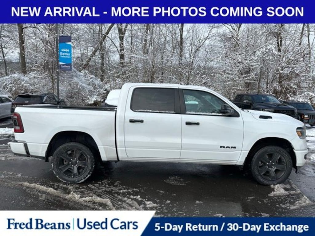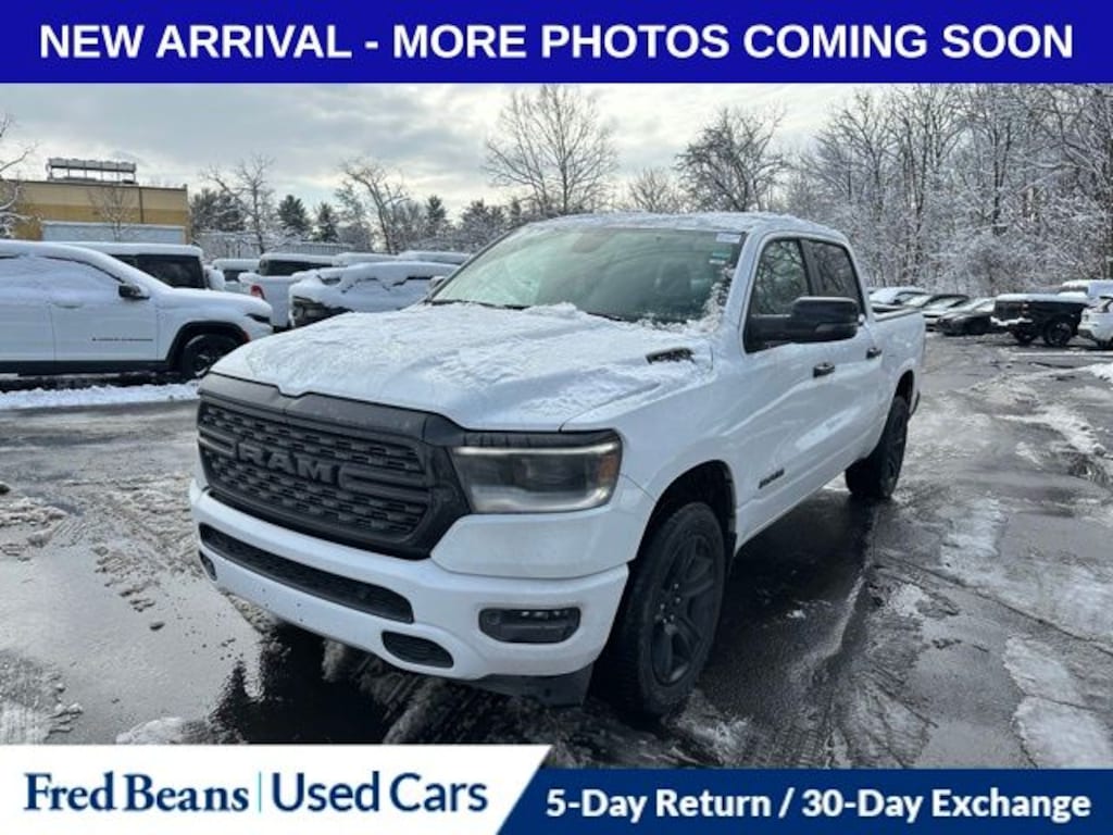 Recent Arrival! 2023 Ram 1500 Big Horn/Lone Star HEMI 5.7L V8 Multi Displacement VVT eTorque 8-Speed Automatic 4WD 4D Crew Cab Bright White Clearcoat Great Service History, 115V Auxiliary Power Outlet, 2nd Row In Floor Storage Bins, 400W Inverter, 9 Amplified Speakers w/Subwoofer, Accent Color Door Handles, Accent Color Premium Power Mirrors, Air Conditioning ATC w/Dual Zone Control, Anti-Spin Differential Rear Axle, Apple CarPlay, Auto-Dimming Exterior Driver Mirror, Auto-Dimming Rear-View Mirror, Big Horn Badge, Big Horn Level B Equipment Group, Black Exterior Mirrors, Black Exterior Truck Badging, Black Headlamp Bezels, Black Interior Accents, Black Painted Exterior Mirrors Caps, Black Premium Power Mirrors, Body Color Front Bumper, Body Color Rear Bumper w/Step Pads, Class IV Receiver Hitch, Cluster 7.0" TFT Color Display, Convex Wide-Angle Exterior Mirror Insert, Deluxe Cloth Bucket Seats, Dual Exhaust w/Black Tips, Exterior Mirrors Courtesy Lamps, Exterior Mirrors w/Heating Element, Exterior Mirrors w/Supplemental Signals, Front Fog Lamps, Front LED Fog Lamps, Global Telematics Box Module (TBM), Glove Box Lamp, GPS Navigation, Heated Front Seats, Heated Steering Wheel, LED Footwell Lighting, LED Reflector Headlamps, LED Taillamps, Media Hub w/2 Charge Only USBs, Night Edition, ParkSense Front/Rear Park Assist w/Stop, Power 2-Way Driver Lumbar Adjust, Power 8-Way Driver Seat, Power Adjustable Pedals, Power-Folding Mirrors, Premium Lighting Group, Quick Order Package 27Z Big Horn, Radio: Uconnect 5 Nav w/12.0" Display, RAM Grille Badge - Black, Rear Dome w/On/Off Switch Lamp, Rear Power Sliding Window, Rear Window Defroster, Remote Start System, Security Alarm, SiriusXM Radio Service, SiriusXM Satellite Radio, Sun Visors w/Illuminated Vanity Mirrors, Universal Garage Door Opener, Wheels: 20" x 9.0" Premium Paint/Polished.