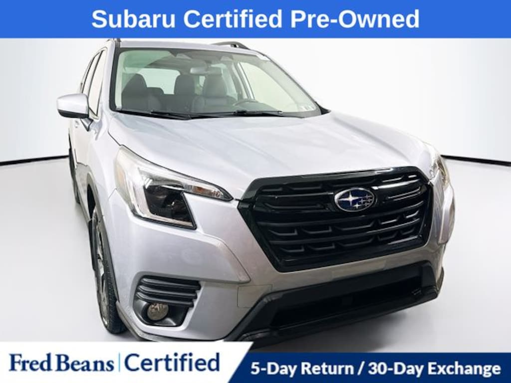 2023 Subaru Forester Premium 2.5L 4-Cylinder DOHC 16V Lineartronic CVT AWD 4D Sport Utility Ice Silver Metallic Local Trade, 7 Year / 100k Powertrain Warranty, Non Smoker, Blind-Spot Detection (BSD), Exterior Parking Camera Rear, EyeSight System, Heated front seats, Power driver seat, Power moonroof: Panoramic, Power Rear Gate, STARLINK/Apple CarPlay/Android Auto.