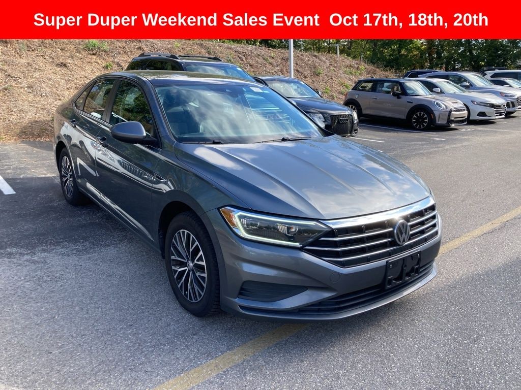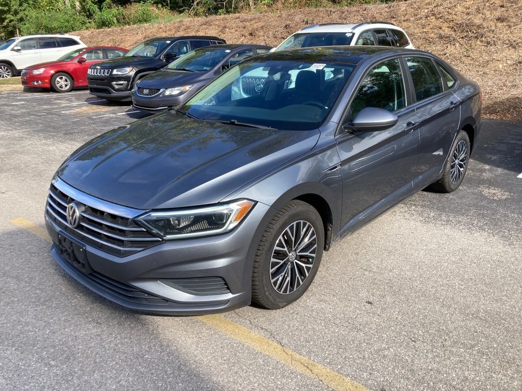 Recent Arrival! 2019 Volkswagen Jetta SEL 1.4L TSI 8-Speed Automatic with Tiptronic FWD 4D Sedan Platinum Gray Metallic Great Service History, Remainder of Factory Warranty, Factory Certified Vehicle, Free First Oil Change, Auto Reward Program, Titan Black w/Perforated V-Tex Leatherette Seat Trim.