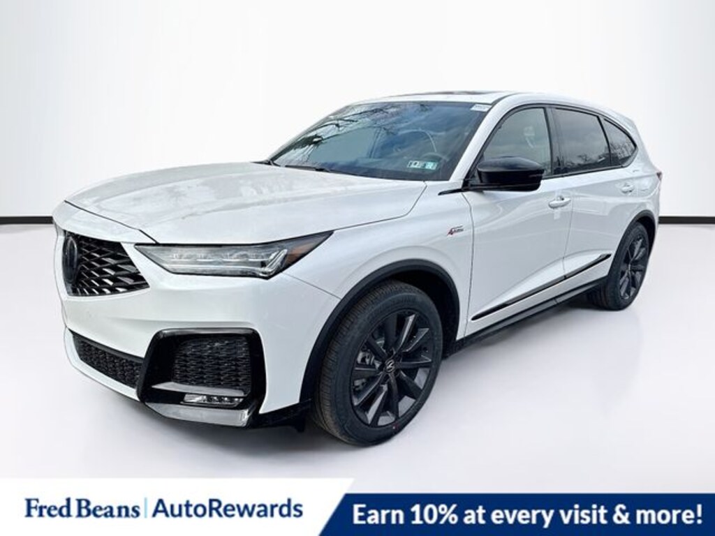 Platinum White Pearl 2026 Acura MDX A-Spec SH-AWD AWD 10-Speed Automatic 3.5L V6 SOHC i-VTEC 24V 19 Speakers, 3rd row seats: split-bench, 4-Wheel Disc Brakes, ABS brakes, Air Conditioning, Alloy wheels, AM/FM radio, Anti-whiplash front head restraints, Apple CarPlay/Android Auto, Audio memory, Auto High-beam Headlights, Auto tilt-away steering wheel, Auto-dimming Rear-View mirror, Automatic temperature control, Brake assist, Bumpers: body-color, Compass, Delay-off headlights, Driver door bin, Driver vanity mirror, Dual front impact airbags, Dual front side impact airbags, Electronic Stability Control, Emergency communication system: AcuraLink, Exterior Parking Camera Rear, Four wheel independent suspension, Front anti-roll bar, Front Bucket Seats, Front Center Armrest, Front dual zone A/C, Front fog lights, Front reading lights, Fully automatic headlights, Garage door transmitter: HomeLink, Heated and Ventilated Front Sport Seats, Heated door mirrors, Heated front seats, HVAC memory, Illuminated entry, Knee airbag, Lane departure: Lane Keeping Assist System (LKAS) active, Leather steering wheel, Low tire pressure warning, Memory seat, Navigation system: Google built-in (3-Years Unlimited Data Plan for In-Vehicle Apps), Occupant sensing airbag, Outside temperature display, Overhead airbag, Overhead console, Panic alarm, Passenger door bin, Passenger vanity mirror, Perforated Premium Milano Leather and Ultrasuede Seats, Power door mirrors, Power driver seat, Power Liftgate, Power moonroof, Power passenger seat, Power steering, Power windows, Premium audio system: Acura/ELS Studio 3D, Radio data system, Radio: Bang & Olufsen Premium Audio System, Rain sensing wipers, Rear air conditioning, Rear anti-roll bar, Rear reading lights, Rear seat center armrest, Rear window defroster, Rear window wiper, Remote keyless entry, Security system, Speed control, Speed-sensing steering, Speed-Sensitive Wipers, Split folding rear seat, Spoiler, Sport steering wheel, Steering wheel memory, Steering wheel mounted audio controls, Tachometer, Telescoping steering wheel, Tilt steering wheel, Traction control, Trip computer, Turn signal indicator mirrors, Variably intermittent wipers, Ventilated front seats, Wheels: 20" x 9J Aluminum Alloy.
