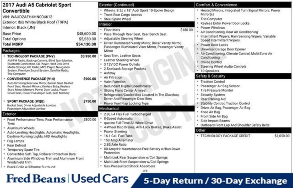 Had this 2015 Audi A5 Cab for 2.5years, actually my wife's car, and it has been a lot of fun driving it near and in the mountains of East Tennessee. We put about 18K miles on it. The styling is exceptional with the top down, the brown color is striking, and driving on the winding roads is exhilarating. The front seats give more than enough room. The driving position is very good. The back seats are useless for humans but they are there for extra storage. Strange that there are reading lights and cupholders for the prospective backseat passengers. The seat backs fold down for extra trunk storage. The technology takes some getting used to, but spending a few hours with the owner's manual and you'll get the knack of it. Very reliable, with one exception due to an intermittent left rear window, but, heh, it is going on 8 years old. Fun to drive on the interstate and through the mountains but the ride is a bit stiffer and slightly bouncy as the wheelbase is shorter. The Continental Tires on the car, though, wear out after 25-30K miles, a disappointment. On long trips, I average close to 36 mpg, but with premium (93 Octane) gas. Very high quality interior appointments.