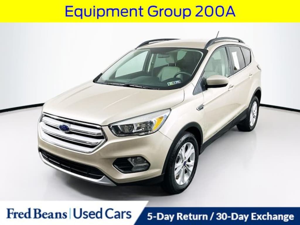 2018 Ford Escape SE EcoBoost 2.0L I4 GTDi DOHC Turbocharged VCT 6-Speed Automatic 4WD 4D Sport Utility White Gold Local Trade, AM/FM radio: SiriusXM, Automatic temperature control, Equipment Group 200A, Exterior Parking Camera Rear, Front dual zone A/C, Front fog lights, Heated Unique Cloth Front Bucket Seats, Power door mirrors, Power driver seat, Power windows, Rear window defroster, Rear window wiper, Remote keyless entry, SE SYNC 3 Package, Speed control, SYNC 3 Communications & Entertainment System, SYNC Connect, Tilt steering wheel, Wheels: 17" Sparkle Silver-Painted Aluminum. 22/28 City/Highway MPG