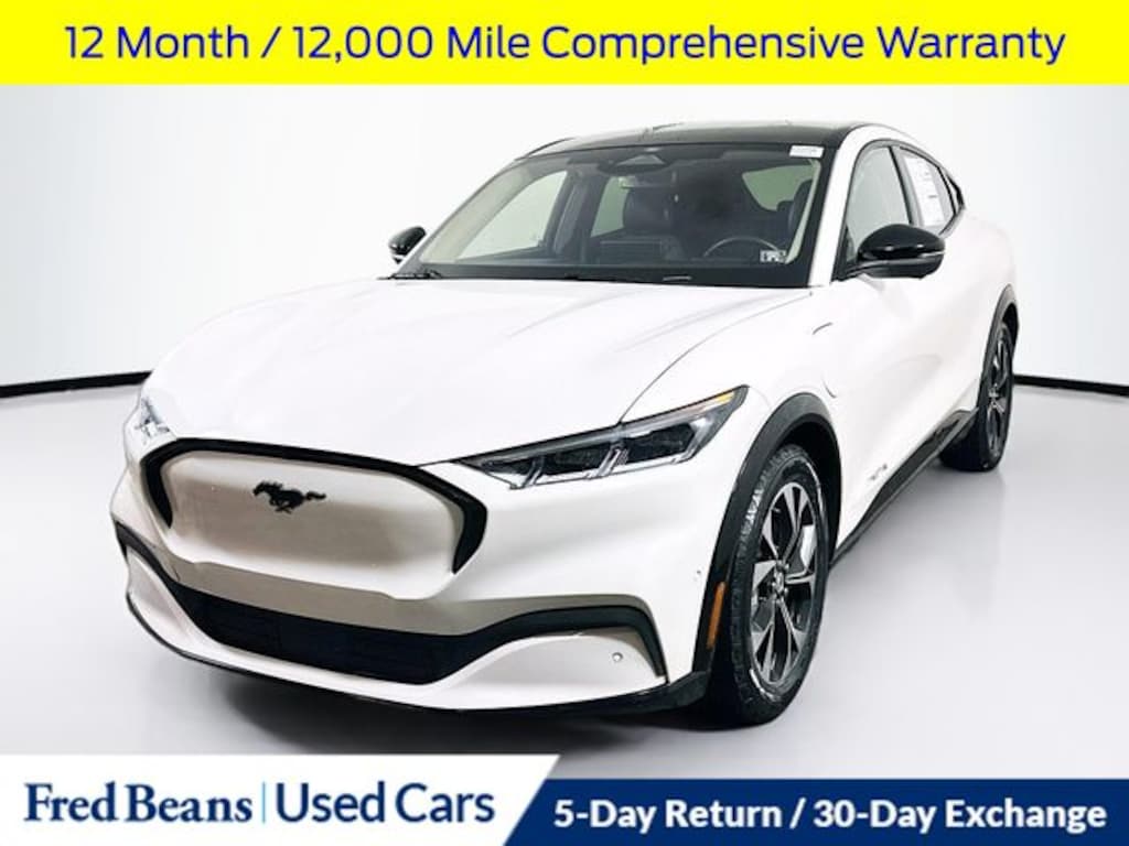 2021 Ford Mustang Mach-E Premium Dual Electric Motor Single-Speed Automatic AWD 4D Sport Utility Star White Metallic Tri-Coat 7 Year / 100k Powertrain Warranty, 12 Month / 12,000 Mile Comprehensive Warranty, Local Trade, Apple CarPlay/Android Auto, Automatic temperature control, Cargo Area Protector, Equipment Group 300A, Exterior Parking Camera Rear, Front & Rear Floor Liners, Front dual zone A/C, Heated door mirrors, Heated Perforated ActiveX Bucket Seats, Interior Protection Package (Pre-Installed), Memory seat, Power door mirrors, Power driver seat, Power Liftgate, Power windows, Rain sensing wipers, Rear window defroster, Rear window wiper, Remote keyless entry, SiriusXM Radio w/360L, Speed control, SYNC 4A w/Enhanced Voice Recognition, Turn signal indicator mirrors, Wheels: 19" Machined-Face Aluminum. 100/86 City/Highway MPG