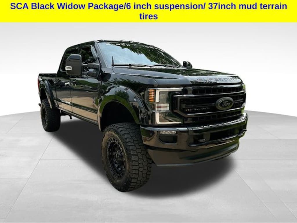 2022 Ford F-250SD Lariat Power Stroke 6.7L V8 DI 32V OHV Turbodiesel 10-Speed Automatic 4WD 4D Crew Cab Agate Black Metallic Local Trade, SCA Performance, Black Window Package, 6 inch suspension lift, 20" Black Widow wheels, 37 inch Mud Terrain Tires, Speedometer calibration, amber front fender lights, body color pocket fender flares, black painted interior trim, Black Widow logo caps, Amber front fender lights, Black Widow custom stitch headrest, Black Wido Performance windshield snipe, Color matching painted bumpers, 397 Amp Alternator, 5th Wheel/Gooseneck Hitch Prep Package, 6" Ebony Black Angular Running Boards, Ambient Lighting - Fixed Color, Automatic temperature control, Black Appearance Package, Black Out Surrounds LED Only Headlamps, Body-Color Front & Rear Bumpers, Easy Entry®/Exit Memory Driver's Seat Feature, Ebony Black Painted Front Grille Bars, Ebony Black Painted Mirror Caps, Electronic-Locking w/3.55 Axle Ratio, Engine Block Heater, Exterior Parking Camera Rear, Front dual zone A/C, FX4 Off-Road Package, GVWR: 10,000 lb Payload Package, Heated door mirrors, High Capacity Trailer Tow Package, Hill Descent Control, Intelligent Access w/Push-Button Start, Lariat Ultimate Package, LED Box Lighting, Memory Power-Adjustable Pedals, Navigation system: Connected Navigation, Off-Road Specifically Tuned Shock Absorbers, Order Code 608A, Power Heated/Ventilated Driver Seat w/Memory, Power Heated/Ventilated Passenger Seat, Power Telescoping/Tilt Steering Wheel/Column, PowerScope Trailer Tow Mirrors w/Memory, Radio: B&O Sound System by Bang & Olufsen, Rapid-Heat Supplemental Cab Heater, Rear Parking Sensors, Rear Wheel Well Liners (Pre-Installed), Remote Start System, Remote Tailgate Release, SiriusXM Radio w/360L, SYNC 4 w/Enhanced Voice Recognition, Tailgate Step & Handle, Tough Bed Spray-In Bedliner, Turn signal indicator mirrors, Twin Panel Power Moonroof, Unique FX4 Off-Road Box Decal, Universal Garage Door Opener (UGDO), Upfitter Switches (6), Wheels: 20" High-Gloss Black Premium Painted Alum.