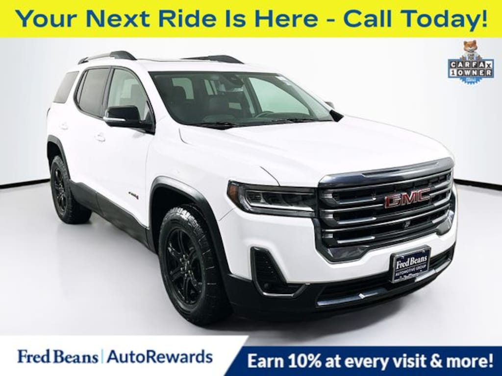 Discover the exceptional 2023 GMC Acadia AT4, a versatile and capable SUV that elevates your driving experience. With its striking white exterior and premium Jet Black leather-appointed interior, this Acadia is a true head-turner. Beneath the surface, it's powered by a potent 3.6L V6 SIDI engine mated to a smooth-shifting 9-speed automatic transmission, delivering the performance and efficiency you demand.