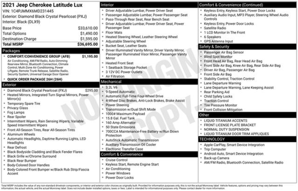 Discover the perfect blend of capability, comfort, and style with this exceptional 2021 Jeep Cherokee Latitude Lux. Experience the difference for yourself by scheduling a test drive today. We're confident you'll be impressed by the exceptional value and quality this vehicle has to offer.