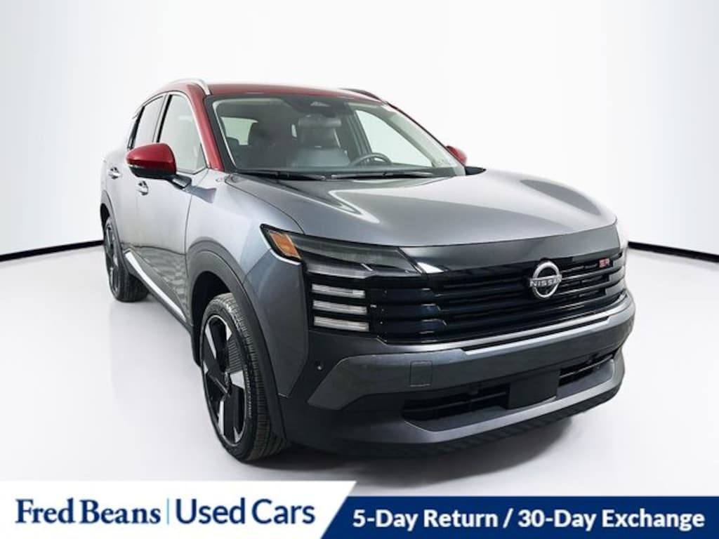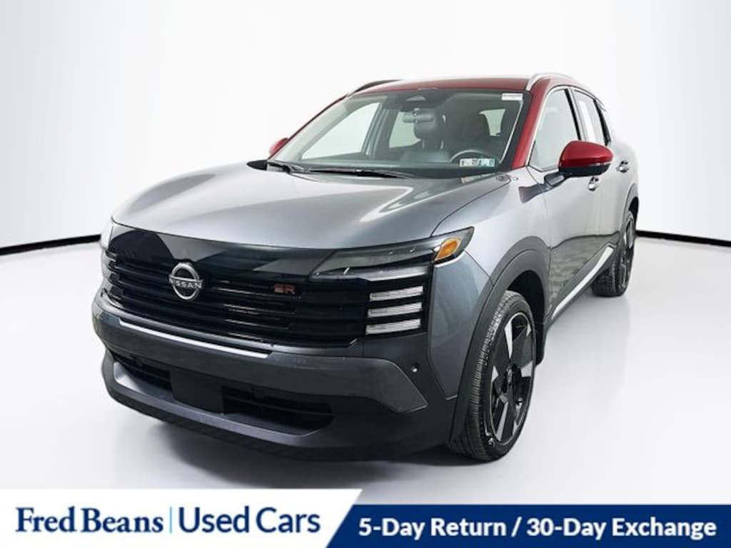 Recent Arrival! 2025 Nissan Kicks SR 2.0L DOHC CVT with Xtronic FWD 4D Sport Utility Gun Metallic/Scarlet Ember Tintcoat Remainder of Factory Warranty, 5 Day Return / 30 Day Exchange, Auto Reward Program, 19" Alloy Wheels, 2-Tone Paint, Auto High-beam Headlights, Radio: AM/FM Audio System, Steering wheel mounted audio controls.