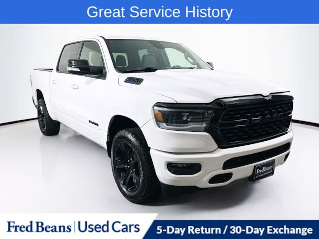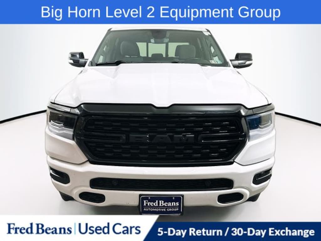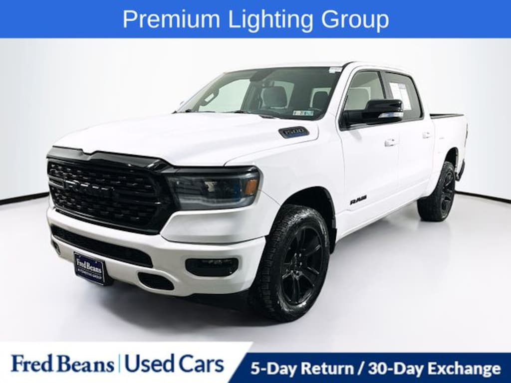 2022 Ram 1500 Big Horn/Lone Star 3.6L V6 24V VVT 8-Speed Automatic 4WD 4D Crew Cab Bright White Clearcoat Great Service History, 115V Auxiliary Power Outlet, 115V Auxiliary Rear Power Outlet, 2nd Row In Floor Storage Bins, 4G LTE Wi-Fi Hot Spot, 8.4" Touchscreen Display, Air Conditioning ATC w/Dual Zone Control, Anti-Spin Differential Rear Axle, Apple CarPlay, Auto-Dimming Exterior Driver Mirror, Auto-Dimming Rear-View Mirror, Bed Utility Group, Big Horn Level 2 Equipment Group, Black Exterior Mirrors, Black Exterior Truck Badging, Black Headlamp Bezels, Black Interior Accents, Black Premium Power Mirrors, Bluetooth Handsfree Phone & Audio, Body Color Front Bumper, Body Color Rear Bumper w/Step Pads, Class IV Receiver Hitch, Cluster 7.0" TFT Color Display, Connectivity - US/Canada, Convex Wide-Angle Mirror Insert, Deluxe Cloth Bucket Seats, Dual Exhaust w/Black Tips, Exterior Mirrors Courtesy Lamps, Exterior Mirrors w/Heating Element, Exterior Mirrors w/Supplemental Signals, For Details, Visit DriveUconnect.com, Front LED Fog Lamps, Global Telematics Box Module (TBM), Glove Box Lamp, Google Android Auto, GPS Antenna Input, Heated Front Seats, Heated Steering Wheel, Integrated Center Stack Radio, LED Reflector Headlamps, LED Taillamps, Media Hub w/2 Charge Only USBs, MOPAR 4 Adjustable Cargo Tie-Down Hooks, MOPAR Deployable Bed Step, MOPAR Spray In Bedliner, Night Edition (DISC), ParkSense Front/Rear Park Assist w/Stop, Pick-Up Box Lighting, Power 2-Way Driver Lumbar Adjust, Power 8-Way Driver Seat, Power Adjustable Pedals, Power-Folding Mirrors, Premium Lighting Group, Radio: Uconnect 5 W w/8.4" Display, Rear Dome w/On/Off Switch Lamp, Rear Power Sliding Window, Rear Window Defroster, Remote Start System, Security Alarm, SiriusXM Radio Service, SiriusXM Satellite Radio, Sun Visors w/Illuminated Vanity Mirrors, Universal Garage Door Opener, USB Host Flip, Wheels: 20" x 9.0" Premium Paint/Polished (DISC).