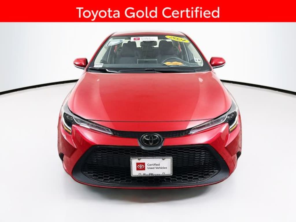 Recent Arrival! 2021 Toyota Corolla LE 1.8L I4 DOHC 16V CVT FWD 4D Sedan Barcelona Red Metallic Great Service History, 5 Day Return / 30 Day Exchange, Auto Reward Program, Corolla LE, 4D Sedan, 1.8L I4 DOHC 16V, FWD, Barcelona Red Metallic, Black w/Premium Fabric Seat Trim.