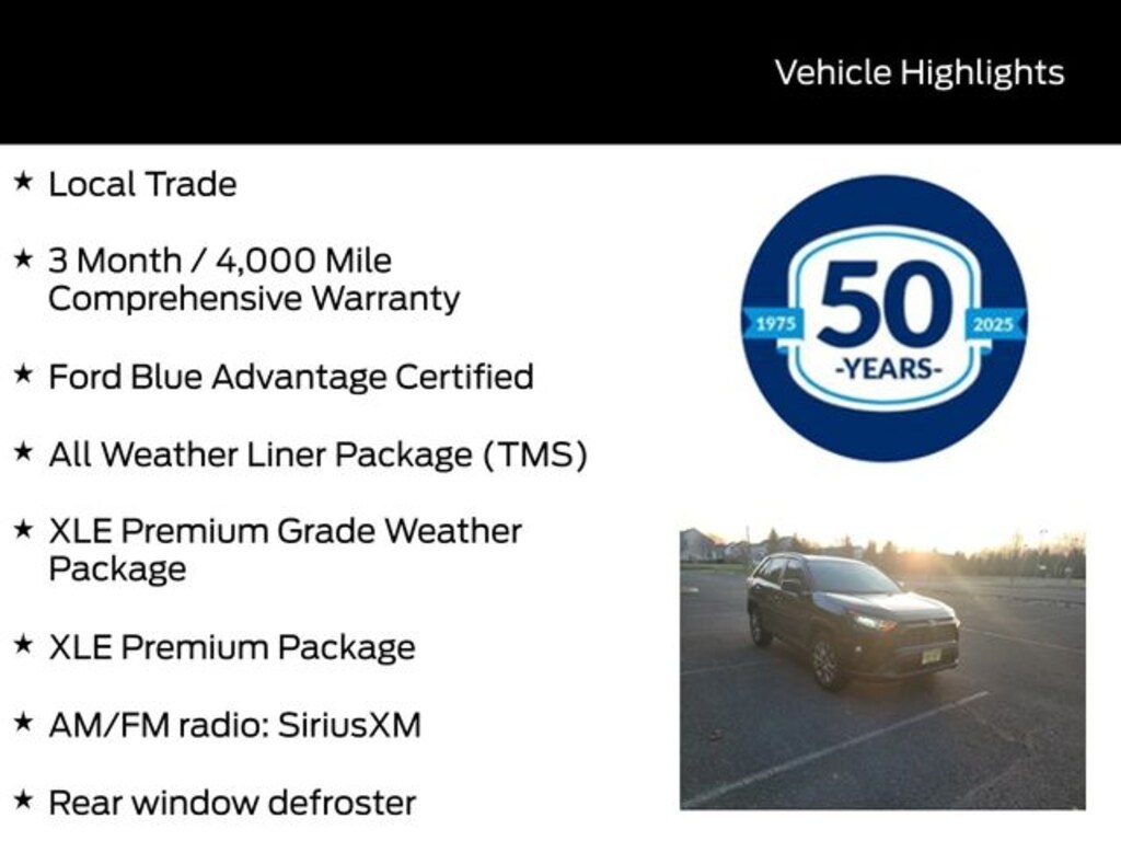 This RAV4 is Ford Blue Advantage Certified, meaning it has undergone a rigorous multi-point inspection and comes with the reassurance of comprehensive warranty coverage. With low mileage and a clean local trade-in history, this is an exceptional opportunity to own a like-new Toyota SUV.