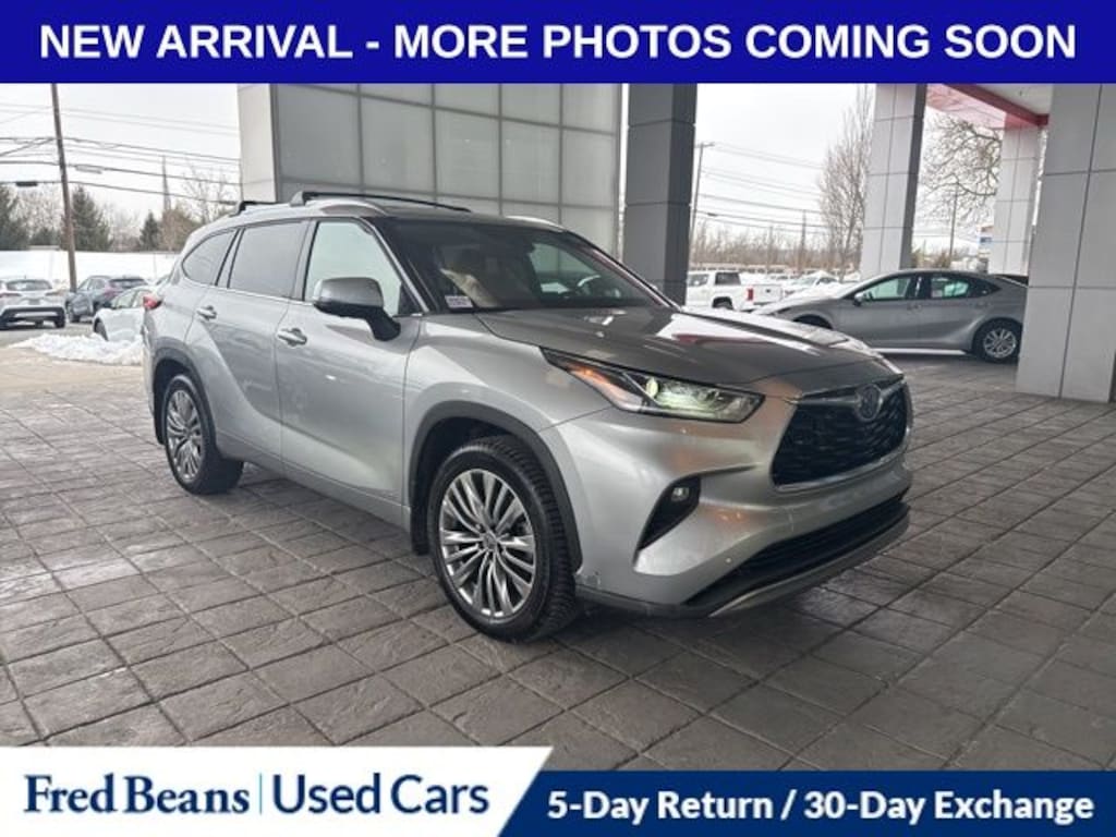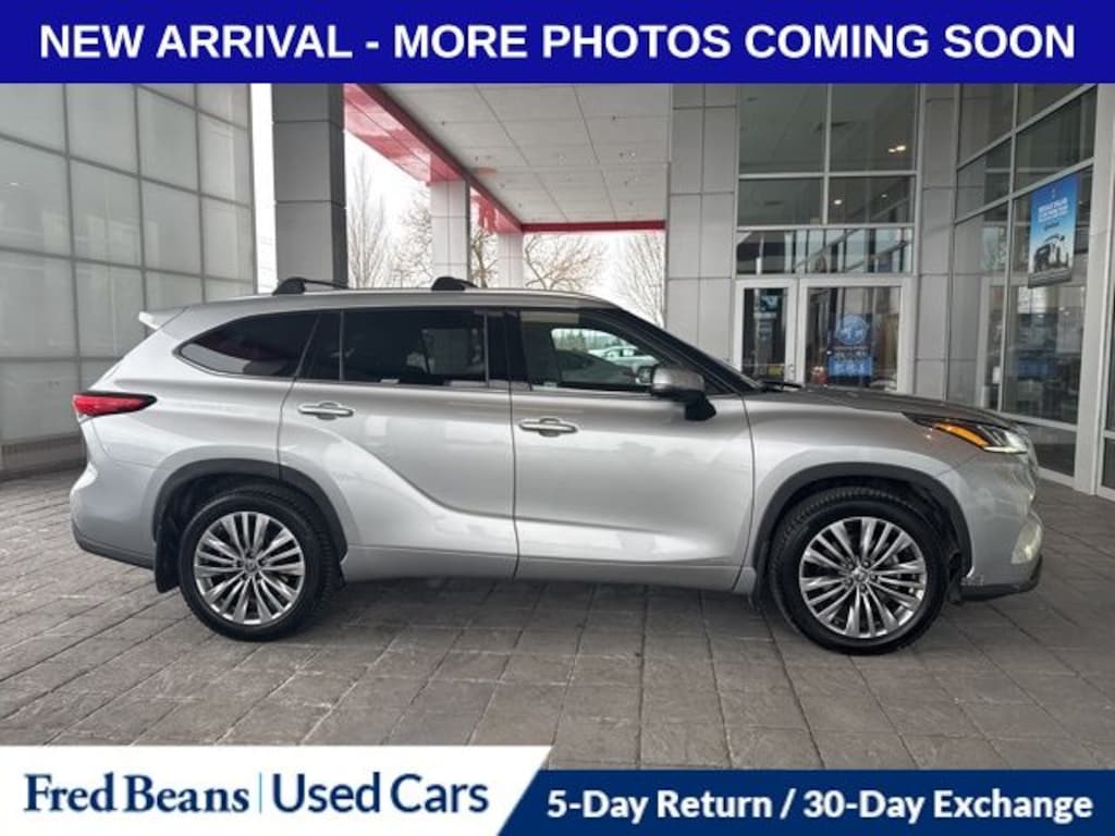 2023 Toyota Highlander Hybrid Platinum 2.5L I4 PDI Hybrid DOHC 16V LEV3-SULEV30 eCVT AWD 4D Sport Utility Silver Auto Reward Program, Free First Oil Change, Highlander Hybrid Platinum, 4D Sport Utility, 2.5L I4 PDI Hybrid DOHC 16V LEV3-SULEV30, AWD, Silver, Black Leather, High Grade LED, Panoramic Moonroof, Panoramic View Monitor, Platinum Package.