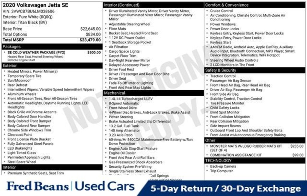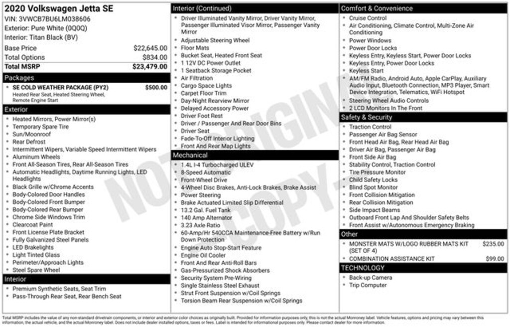 Recent Arrival! 2020 Volkswagen Jetta 1.4T SE 1.4L TSI 8-Speed Automatic with Tiptronic FWD 4D Sedan Pure White Local Trade, Alloy wheels, Exterior Parking Camera Rear, Front Wiper Heating Area At Bottom Of Windshield, Heated door mirrors, Heated Front Washer Nozzles, Heated Rear Outboard Seating Positions, Heated Steering Wheel, Power door mirrors, Power moonroof, Power windows, Rear window defroster, Remote Engine Start w/Remote Key Fob, Remote keyless entry, SE Cold Weather Package, Speed control, VW App-Connect (w/Apple CarPlay, Android Auto & MirrorLink), Washer Fluid Level Indicator. 30/40 City/Highway MPG
