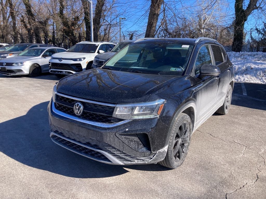 Recent Arrival! 2023 Volkswagen Taos 1.5T SE 1.5L I4 Turbocharged DOHC 16V LEV3-SULEV30 158hp 7-Speed DSG Automatic with Tiptronic AWD 4D Sport Utility Deep Black Pearl Bought & Serviced at Fred Beans, Local Trade, Great Service History, Remainder of Factory Warranty, Factory Certified Vehicle, Auto Reward Program, Black Wheel Package, Panoramic Sunroof Package, Wheels: 18" Black Painted Alloy.
